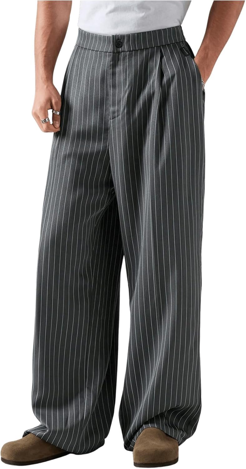 • Men’s pleated pants feature a timeless design with striped print, offering a formal yet fashionable look that can be dressed up or down