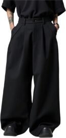 - Features: Zipper fly closure, solid color, wide-leg pants, pleated dress pants, work casual slacks