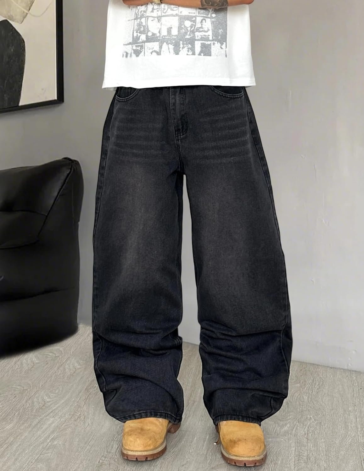 • 【Super Baggy Jeans】Men’s baggy jeans offer a relaxed and comfortable fit, with a generous cut through the hips, thighs, and legs.